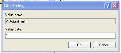 এবার ডানপার্শ্বের AutoEndTask অপশনে ডাবল ক্লিক করুন এবং এখানে Value data হিসাবে 0-এর পরিবর্তে 1 লিখুন। OK দিয়ে বের হয়ে আসেন।