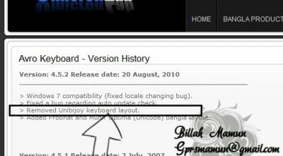 অবশেষে অভ্র থেকে সরিয়ে নেয়া হলো ইউনিবিজয় লেআউট