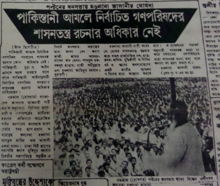 মাওলানা ভাসানী এই কাজের আশু ফল অনুধাবন করতে পেরেছিলেন। ১৯৭২ সালের ৯ অক্টোবর তারিখে পল্টনের এক বিশাল জনসভায় "পাকিস্তানের গণপরিষদের শাসনতন্ত্র রচনার এখতিয়ার নেই" বলে সেই প্রচেষ্টাকে প্রত্যাখ্যান করেছিলেন তিনি।