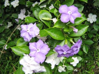 অনেকেই মনে করেন, একই গাছে দুই রকম ফুল ফুটেছে। প্রথম দর্শনে সে রকম মনে হওয়াটা অস্বাভাবিক কিছু নয়। কারণ গাছে সব সময় দুই রঙের ফুল দেখা যায়। আসলে তা না। বৈচিত্র্যটা তাজা আর বাসী ফুলের মধ্যে। তাজা ফুল বেগুনি রঙের, বাসী ফুল সাদা। ফুল বাসী হলেও তাত্ক্ষণিকভাবে ঝরে না পড়ায় রঙের এমন বৈপরীত্য নজর কাড়ে। ব্রুনফেলসিয়া (Brunfelsia calycina) মোটামুটি সহজলভ্য। মূলত গাছের গড়ন, পাতা, ফুল ও গন্ধের কারণেই আদর্শ। আদি আবাস ব্রাজিল হলেও সব উষ্ণমণ্ডলে ছড়িয়ে পড়েছে। গাছ এক থেকে দুই মিটার উঁচু, ছোট ছোট অজস্র ডালে ঝোপাল ও পত্রমোচি। পাতা তিন-ছয় সেন্টিমিটার লম্বা, গাঢ় সবুজ, মসৃণ, শীতের শেষে ঝরে পড়ে। গ্রীষ্মে প্রায় নিষ্পত্র গাছে অজস্র ফুল ফোটে। ফুল তিন সেন্টিমিটার চওড়া। শরত্-হেমন্ত পর্যন্ত বেশ কয়েকবার ফুল হয়। আরেকটি প্রজাতি B. americana লম্বাটে গড়ন, পাতাও আকারে বড়, ফুল প্রথমে সাদা, পরে হলুদ, সুগন্ধি, দলনল পাঁচ-ছয় সেন্টিমিটার লম্বা ও মুখ চার সেন্টিমিটার চওড়া। কলমে চাষ।
