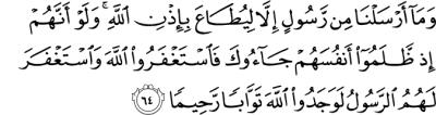 অনুবাদঃ আমি কোন রাসুল প্রেরণ করিনি , কিন্তূ এ জন্য যে , আল্লাহর অনুমতিক্রমে তাঁর (রাসুল) আনুগত্য করা যাবে ।