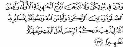 অর্থাৎ হে আল্লাহ ! এরাই আমার আহলে বাইত এবং ঘনিষ্ঠজন । আপনি এডের থেকে অপবিত্রতা দুরীভুত করূন আর এদেরকে পরিপুর্নভাবে পবিত্র করূন । কেউ কেউ বলেন এই দো'আ করার পরই উল্লেখিত আয়াত অবতির্ন হয়েছিল ।