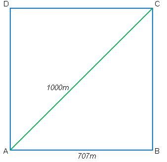 ছোট বর্গের কর্ণ, CE=707m-293m=414m।