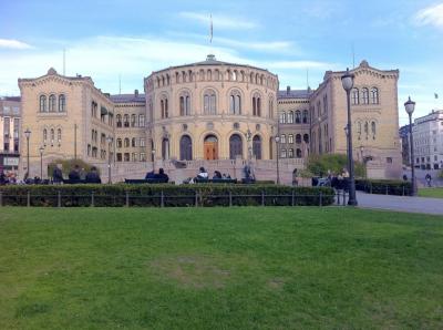 ভার্গেল্যান্ডের বাড়ানো হাতের দিকে তাকালেই চোখে পড়ে নরওয়ের সংসদভবন (Stortinget), আমাদের সংসদ ভবনের তুলনায় বেশ ছোট আকারের; ১৬ কোটি মানুষের সংসদ এবং ৫০ লাখ মানুষের সংসদে এ পার্থক্য অবশ্য অস্বাভাবিক নয়।