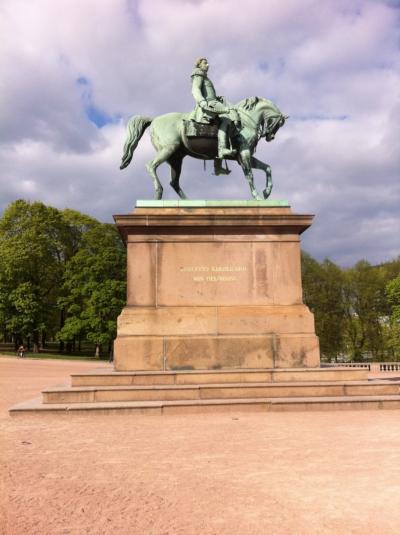 আবেলের পেছনেই অজলো রাজবাড়ি, সামনে অশ্বপৃষ্ঠে আসীন নরওয়ে-সুইডেনের এককালের রাজা কার্ল লোহান (১৭৬৩-১৮৪৪)।