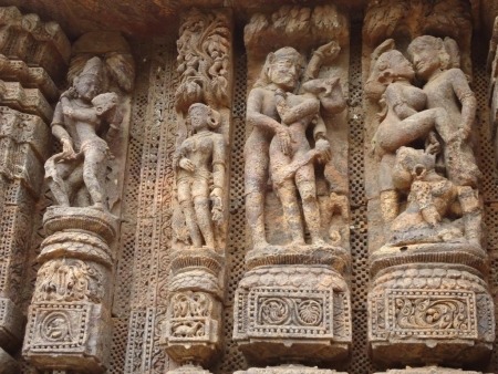 বিশাল আকৃতির এই মন্দির নির্মানশৈলি প্রশংসার দাবি রাখে। পুরো মন্দিরের অবয়ব জুড়ে পাথরের টেরাকোঠার কাজ। টেরাকোঠাগুলো সবই নরনারীর যৌনসংগম ও আচরণ সংশ্লিষ্ট। দুলাভাই একটি কলেজের সমাজ বিজ্ঞানের অধ্যাপক। তিনি জানালেন, প্রাচীন বা মধ্যভারতে হিন্দু সমাজের মধ্যে পলোগামিতা বৈধ ছিল। এই চিত্রগুলো তার অনন্য উদাহরণ। মন্দির মানে শ্রষ্টার জন্য ভক্তি প্রদর্শনের স্থান। সেখানে এই অবাধ যৌনচিত্রের শিল্পকলা স্থাপনের কারণ আমার বোধগম্য নয়। অধ্যাপক দ্লুাভাই সমাজবিজ্ঞানের ভাষায় জানালেন, বেশিরভাগ ধর্মেই বংশবৃদ্ধির জন্য যৌনকর্মকে বিশেষ গুরুত্ব দিয়েছে। তবে প্রাচীন হিন্দু ধর্মে অবাধ যৌনাচারের প্রমাণ পাওয়া যায়। যৌনতৃপ্তির মাধ্যমে দেব-দেবির আর্শিবাদ প্রাপ্তি—ও অনেকের লক্ষ ছিল।