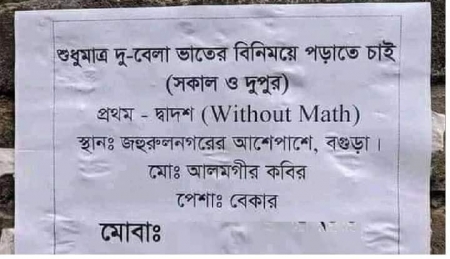 প্রাতিষ্ঠানিক শিক্ষা গ্রহণ যখন কারো চাকুরীর উদ্দেশ্যে অর্জন করা হয় তখন সেই ব্যক্তির চাকুরী না হওয়াটাই যুক্তিসঙ্গত। “এই নিয়োগপত্র আপনার নিয়োগের চূড়ান্ততা ঘোষণা করেনা” - ঘোষণাটি যেমন তেমনি কোন শিক্ষাই আপনাকে চাকুরীর নিশ্চয়তা দিবে না- এটা সর্বজনজ্ঞাত ব্যাপার। শিক্ষা গ্রহণের মূল উদ্দেশ্য যদি হয়... বাকিটুকু পড়ুন
