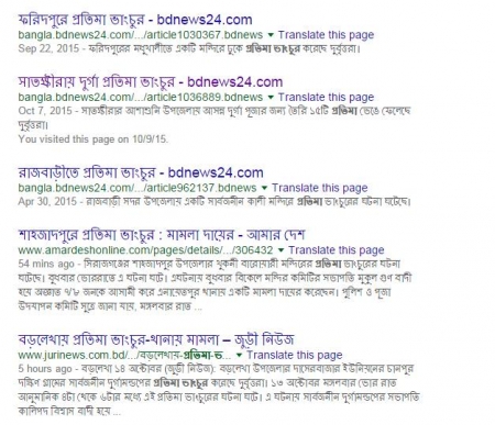 ১.শেরপুরে ৪০ বছরের পুরোনো মন্দিরের আসন্ন দূর্গাপুজার ৩ টি প্রতিমা ভাংচুর করেছে দুর্বত্তরা। (শেরপুর নিউজ২৪ / তারিখ ১৩ই অক্টোবর ১৫) ২.ডিমলায় মন্দিরের মূর্তি ভাংচুর (দৈনিক যুগান্তর/ ২রা সেপ্টেম্বর ২০১৫) ৩.মধুখালীতে মন্দিরের মূর্তি ভাংচুর (দৈনিক যুগান্তর/ ২৩শে সেপ্টেম্বর ২০১৫) ৪.সাভারে একটি মন্দিরের কয়েকটি মূর্তি ভাংচুর (শীর্ষ নিউজ ডট কম ১লা সেপ্টেম্বর... বাকিটুকু পড়ুন
