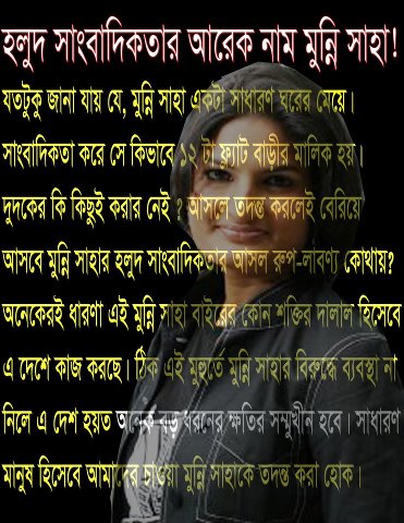 েআমরা চাই মুন্নি সাহা তার সেই সাহসীকতা সাংবাদিকতার প্রতিফলন সময়ে পরিক্রমায় আবার দেখাক। তার হলুদ সাংবাদিকতার বিষয়টি নিয়ে তিনি কিংবা উনার কোন সাগরেদ এই পোষ্টে কমেন্ট করেন।