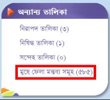 ২. ডানদিকে অন্যান্য তালিকা লেখা বক্সে মুছে ফেলা মন্তব্য সমূহ অপশনে ক্লিক করুন।
