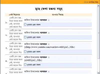 নিচে ১, ২, ৩ ও পরের পাতা অপশনের পাশে >> চিহ্নে ক্লিক করলে সর্বশেষ/সাম্প্রতিক মুছে ফেলা কমেন্টের তালিকা পাবেন ক্লিক করলে
