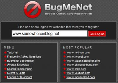 পোস্টের সাথে খানিকটা প্রাসঙ্গিক আরেকটি জিনিস বলছি। যারা উপরে বলা এই Registration এর কষ্টটুকুও করতে রাজি না তাদের জন্য আছে www.bugmenot.com । Bug Me Not ওয়েবসাইটটিতে আপনি পাবেন অসংখ্য পরিচিত-অপরিচিত সাইটের Login করার Username আর Password।