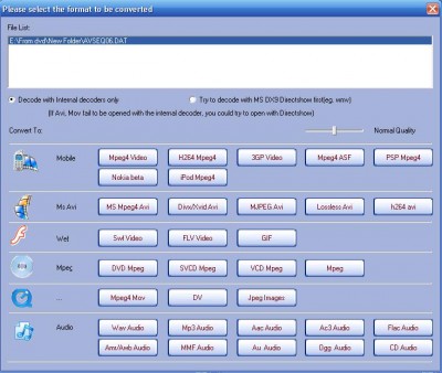 এম পি ই সি- DVD MPEG, SVCD MPEG, VCD MPEG, MPEG ইত্যাদী। অডিও-WAV, MP3, CD, AMR ইত্যাদী ফরমেটে কনভার্ট করা যায়।