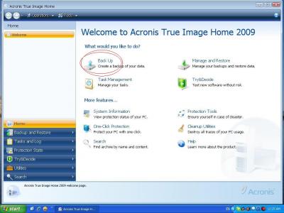 প্রথমেই আপনাকে ডাওনলোড করতে হবে Acronis True Image Home 2009 ডাওনলোড করে ইনষ্টল করে নিন। ডাওনলোড করতে যেতে হবে এখানে