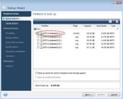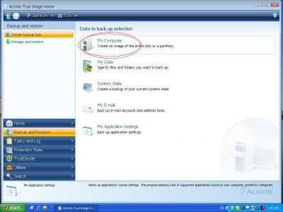 Acronis True Image Home 2009 রান করুন। Home ট্যাব এর ব্যাকাপ এ ক্লিক করুন। নিচের ছবির মত।