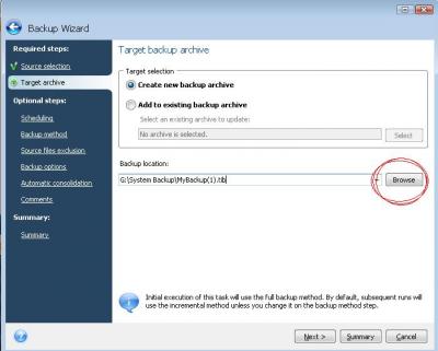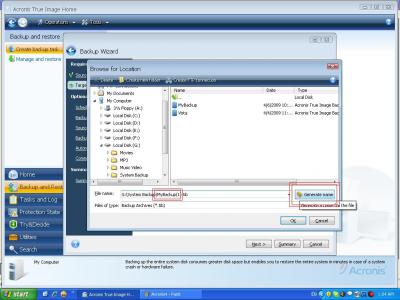 ফাইলের নাম দিন। জেনারেট নেম এ ক্লিক করলে Mybackup নামে একটা ডিফল্ট নাম আসবে ফাইলের। আপনি ইচ্ছে করলে সেটা পরিবর্তন করতে পারবেন, তবে সবার শেষে .tib টা চেঞ্জ করবেন না।