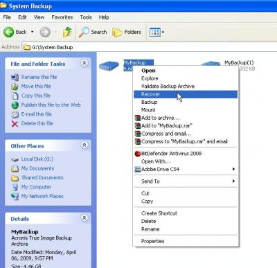 Recover এ ক্লিক করুন। Acronis True Image Home অটোম্যাটিক রান হবে। এই অপশনটি আপনি Start Menu থেকে Acronis True Image Home রান করেও পেতে পারেন।