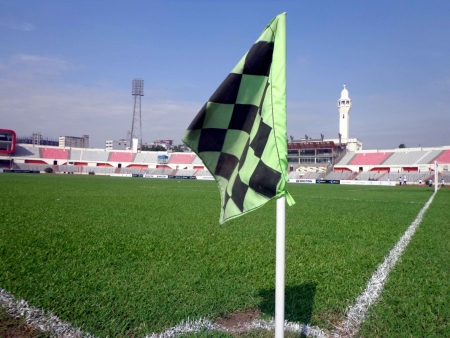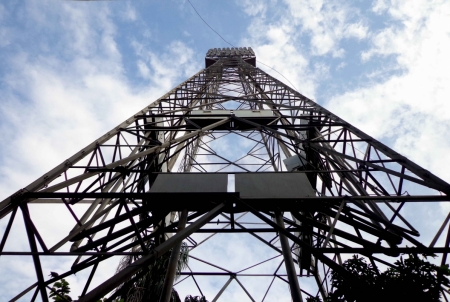 ফ্লাডলাইট... সাথে নীল আকাশের নীচে সাদা মেঘের ভেলা।