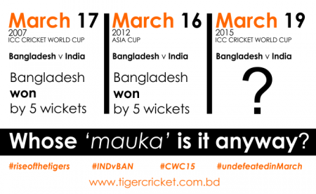 যায় না... আবার ফিরে এসেছে মার্চ... আমাদের মার্চ... এই মার্চ '৭১ এর মার্চ, স্বাধীনতার মার্চ, জ্বালাময়ী এক ভাষণের মার্চ, তিনবার ভারতকে হারানোর মার্চ... সারা দেশের দোয়া রইলো যেন এই তিনবার আগামী ১৯ তারিখে চারবারে পরিণত হয়... ইন শা আল্লাহ্ তা হবে...
