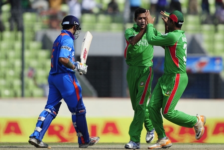 তারপর মোটামুটি গেঁড়ে বসে ভিরাট কোহলী আর শচীন টেন্ডুলকার। দ্বিতীয় উইকেট জুটিতে ১৪৮ রান তোলে এই দুই ব্যাটসম্যান। আবার প্লেড অন... কোহলীকে ফেরান স্পিনার আব্দুর রাজ্জাক... ম্যাচে ফেরে বাংলাদেশ...