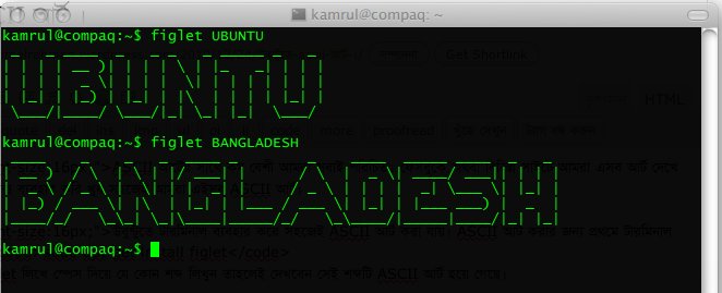 যেমন : figlet UBUNTU, figlet BANGLADESH.