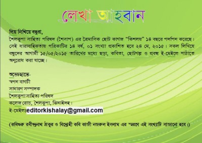 লিখিয়ে বন্ধুদের লিখতে অনুরোধ করা যাচ্ছে...