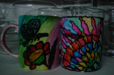 বিভিন্ন সময়ে বিভিন্ন জিনিসপাতি কিনলে যেসব ফ্রী গিফট মাগ গুলো পাওয়া যায়, সেসবের উপরে কাঁচ-রঙে ডিজাইন করে ওদের লোগোগুলো ঢেকে দিয়েছি