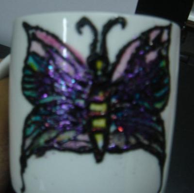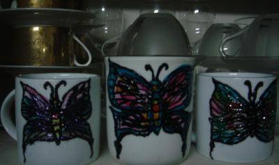 প্রজাপতি ঝিলিমিলি পাখা এঁকেছি মগগুলোর ধপধপে সাদার উপর। একটু গ্লিটার ইউজ করেছি এখানে।