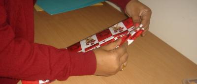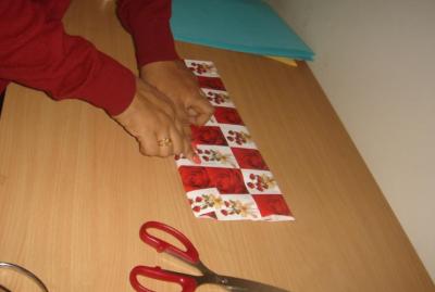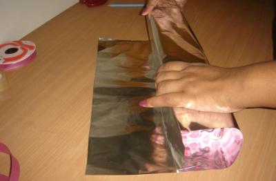 র্যাপিং পেপারটাতে কিছু অংশে এইভাবে ভাঁজ দিয়ে টেপ আটকে দেই। যতগুলো ইচ্ছে ভাঁজ দেওয়া যেতে পারে।