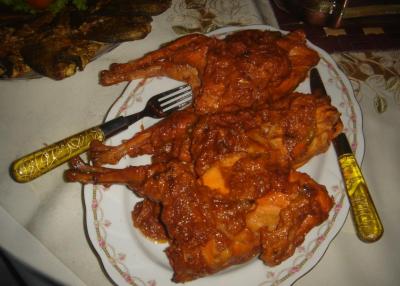 এবার চুলায় ঘি দিয়ে পেঁয়াজ লাল হওয়ার আগে মাখানো মাংস দিয়ে কষাতে হবে। দু-তিনবার কষিয়ে ভাঁজা মুরগীটা দিয়ে একটু পানি দিতে হবে।
