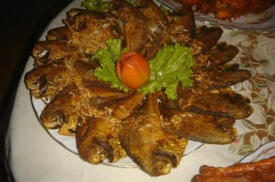 চুলায় ফ্রাইপ্যান চাপিয়ে ডুবোতেলে মাছগুলো ভেঁজে নিতে হবে।