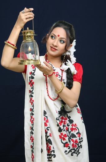 আর অবশ্য অবশ্য লাল সাদা শাড়ি।