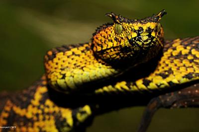 হলুদ এবং কালো ডোরা, নীল চোখ এবং দুটি সুঁচালো শিংযুক্ত নতুন প্রজাতির সাপের খোঁজ পেয়েছেন ব্রিটিশ বিজ্ঞানী টিম ডেভেনপোর্ট। নতুন প্রজাতির এ সাপের নাম রেখেছেন তার মেয়ের নামে ‘মাতিল্ডা হর্নড ভাইপার’।