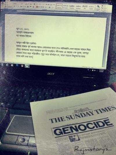 অনুবাদঃ "Genocide, a report published on The Sunday Times by Anthony Mascarenhas"