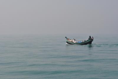 দূরের বিশাল পাহাড় (মিয়ানমারের) আর অথৈ সমুদ্রকে এই ক্ষুদ্র নৌকাটা যেন থোড়ায় তোয়াক্কা করে... ওদের বিশালতার সাথে নৌকাটির এই পাল্লাটাই আমার চোখে পড়েছে ...