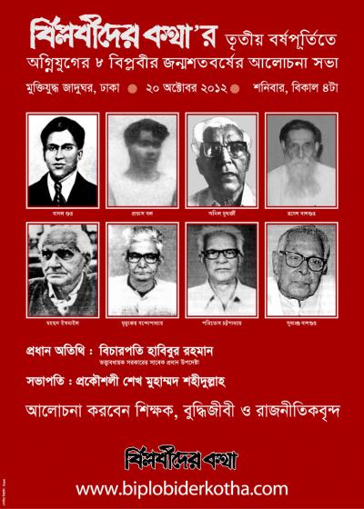 ২০ অক্টোবর ২০১২, বিকেল ৪ টায় মুক্তিযুদ্ধ জাদুঘরে বিপ্লবীদের কথা’র তৃতীয় বর্ষপূর্তিতে অগ্নিযুগের ৮ জন বিপ্লবীর জন্মশতবর্ষের আলোচনা অনুষ্ঠিত হবে। এই বছর মূলত ৩৯ জন বিপ্লবীর জন্মশতবর্ষ চলছে।