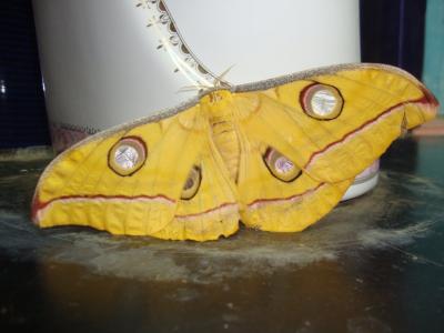 কিন্তু আমি আস্ছি বলে একটু দেখি করায় আম্মা আবারও তাড়াতাড়ি আসার জন্য ডাক দিল।আমিও তাড়াতাড়ি করে গিয়ে দেখলাম একটা প্রজাপতী, বেসিনের উপর বসে আছে। কত সুন্দর,বড়। এতো বড় প্রজাপতী আমি কোন দিনও দেখিনি। প্রায় ৮ ইঞ্চি হবে। আপনাদের ছবিটা দেখার জন্য দিলাম। ছবিতে অতোটা না বুঝা গেলেও সত্যি দেখে আমার মন অবাক করে দিয়েছে। পরে প্রজাপতীটাকে হাতে করে টিভির ঘরে নিয়ে এলাম। এসে সোফার উপরে ফুল দানিতে রাখলাম মজা করে কিছু ছবিও তুললাম। আম্মাকে সাথে নিয়ে।পরে ফুল দানির উপরেই রেখে দিলাম। সকালে উঠে দেখি প্রাজাপতীটা সেই জাইগাতে নেই। ভাবলাম উঠে চলে গেছে। যখন দুপুরে ১টার দিকে