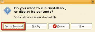 ডাবল ক্লিক করার পর নিচের ছবির মত একটা মেসেজ আসবে। ঐখান থকে ক্লিক করবেন "Run in Terminal" বাটনটাতে।