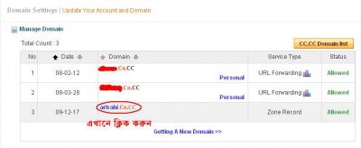এবার আপনাকে Co.cc সাইটে লগিন করতে হবে। লগিন করার পরে আপনার নেয়া ডমেইনের উপরে ক্লিক করুন।