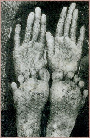 দীর্ঘদিন ধরে শরীরে আের্সেনিক প্রবেশের ফলে এই যে রোগের সৃষ্টি হয় তার নাম আর্সেনিকোসিস। দেহের ত্বকে সুনির্দিষ্ট লক্ষণ ফুটে ওঠার আগ পর্যন্ত এ রোগকে চিহ্নিত করা অসম্ভব। আর্সেনিকোসিস কয়েক প্রকারের। বাংলাদেশের প্রেক্ষাপটে উল্লেখযোগ্য হল মেলানোসিস আর কেরাটোসিস। মেলানোসিসের ফলে চামড়ায় কালো দাগ বা ফুসকুরি পড়ে যায়। কোন কোন অংশ শক্ত হয়ে যায়। উপযুক্ত চিকিৎসা হলে এবং চিকিৎসকের পরার্মশ মতো চললে এ রোগের আরোগ্য সম্ভব। কিন্তু কেরাটোসিস খুবই মারাত্মক। এর ফলে কোন কোন অঙ্গ পচে যায়।