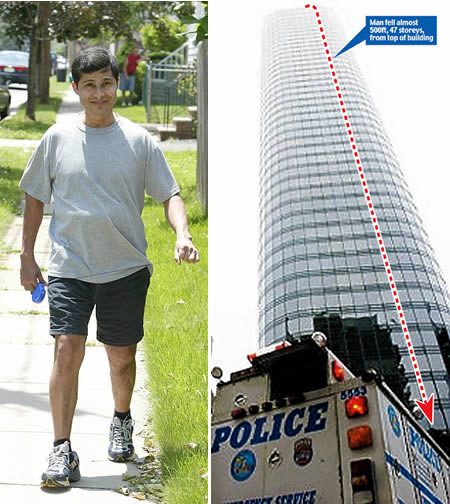 ১. ৩৭ বছর বয়স্ক আলসিডেজ মরেনোর ভাগ্যটা অসম্ভব ভাল বললেও কম বলা হয়। নিউ ইয়র্কের ৪৭ তলা স্কাইস্ক্র্যাপার থেকে মাটিতে পড়েও তিনি বহাল তবিয়তে বেঁচে আছেন! তিনি আর তাঁর ভাই একই সাথে ভবনটির ছাদ থেকে কাজ করার সময় মাটিতে পড়ে যান, তাঁর ভাই সাথে সাথে মারা যায়। কিন্তু টানা তিন সপ্তাহ কোমায় থাকার পর তিনি ধীরে ধীরে জ্ঞান ফিরে পান, এবং তিন বছরের মধ্যে সম্পূর্ণ সুস্থ হয়ে হাঁটাচলা শুরু করেন। যে ডাক্তার তাঁর চিকিৎসা করেন, তাঁকে জন হপকিন্স ভার্সিটি থেকে বিশেষ পুরষ্কার দেয়া হয়।