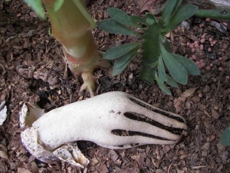 এর বৈজ্ঞানিক নাম Clathrus archeri … যাকে “Octopus stinkhorn” ও বলা হয়ে থাকে। এটি এর পূর্ণাঙ্গ জীবদ্দশাতে চার থেকে আটটি octopus এর ন্যায় tentacle সম্পন্ন হয় যা গাঢ় লাল বর্ণের হয়ে থাকে । এই tentacle গুলোর চারপাশে কালো চাকতির ন্যায় অংশ থাকে যাতে suction cup থাকে... এই কালো চাকতির ন্যায় অংশটি Gleba নামে পরিচিত। এই অংশ থেকে অনেক সময় পচা মাংসের ন্যায় গন্ধ নিঃসৃত হয়। এই গন্ধের ফলে মাছি জাতীয় প্রাণী এদের দিকে আকৃষ্ট হয়। প্রাথমিক পর্যায়ে Devil’s fingers সাদাটে , অর্ধ সমাধিস্থ, ডিমের ন্যায় কন্দমূল সহযোগে থাকে... যখন এটি কন্দমুল থেকে আলাদা হয় , এর আঙ্গুলের ন্যায় অভিক্ষেপ গুলো সাদা হয় এবং এদের কবর ভেদ করে উঠা মরা মানুষের হাতের ন্যায় দেখায়...!!! এরা ১০ সেন্টি মিটার পর্যন্ত লম্বা এবং ২০ সেন্টিমিটার পর্যন্ত চওড়া হয়ে থাকে!!!