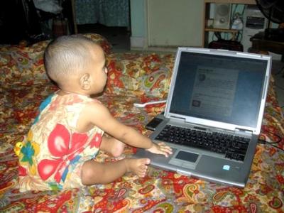 হাবেভাবে বেটায় যেন বিল গেটস, ল্যাপ্পির ঢাকনা খুলা দেখলেই হালুম হুলুম কইরা ঝাপায় পড়ে.... আরে না পোলায় কম্পুর কিছু বুঝে না, আট মাসে কম্পুর কি বুঝবে
