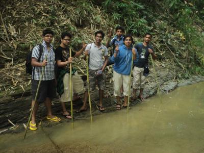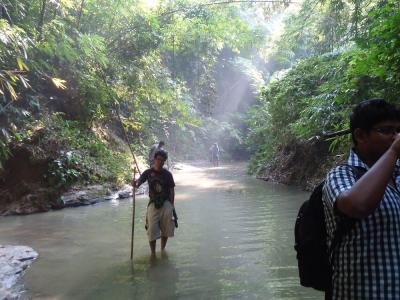 সবচেয়ে আশ্চর্য লাগলো , এই পানি পথের প্রায় পুরো রাস্তা তাই পাথরের অর্থাৎ পানির নিচে যেন পাথর গলে রাস্তা হয়ে গেছে , , তাই কাদা কম । তবে কিছু কিছু জায়গায় মাটি ও কাদা আছে