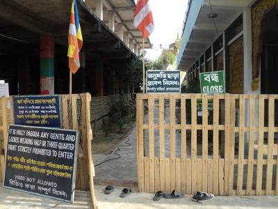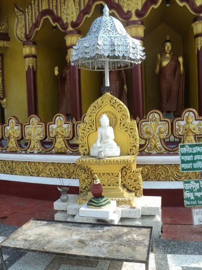 মন্দিরের চারপাশে বুদ্ধের অনেক মূর্তি , সবগুলতেই বিভিন্ন ভাবে পরা পোশাক , তিনি কোন কোন দেশে কিভাবে বস্ত্র পরিধান করিতেন