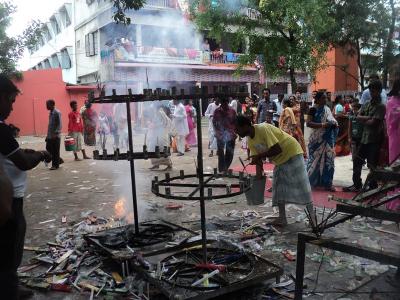 গুলিস্তানের নবাবপুরের ট্রাফিক সিগন্যাল থেকে বারদীর বাসে উঠলাম। ভাড়া সম্ভব ৩৫ টাকা। বাসটি বলাকার ক্লোন , সিট পুরাই মার্কা মারা। দেড় ঘণ্টার মতো সময় লাগলো বারদী বাজার পৌঁছাতে । সিট না থাকায় পুরো পথই প্রায় বকর ভাই দাঁড়িয়ে ছিলেন। বাস থকে নেমে একটু হাঁটলেই মন্দিরের কাছে গিয়ে নাস্তা সারতে বসলাম। পূজার মৌসুম , , সকাল সকাল সবাই হাজির , , হৈ হাই , ধাক ঢোল , নাচ গান। এক্সপেনসিভ (১০ টাকা পরটা) নাস্তা সেরে মন্দিরে গেলুম , , ভিতরে নাচানাচি হচ্ছিল , , ইচ্ছা থাকলেও করলাম না