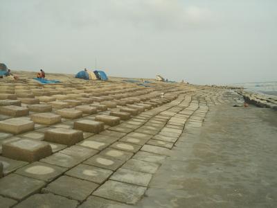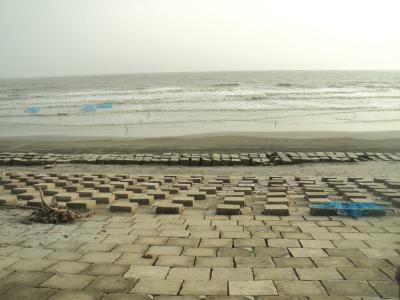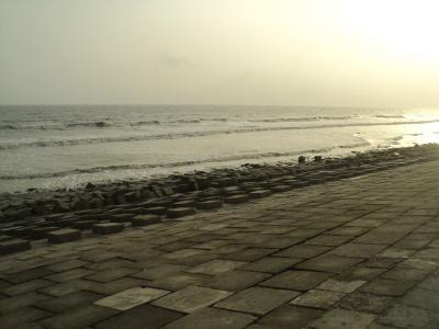 বাইকে চড়ে বসলাম , , এবার সৈকতের পশ্চিমে । সূর্যাস্ত দেখতে যাচ্ছি । পূর্বের চেয়ে পশ্চিমের দিক একেবারেই ভিন্ন , এই দিকের তীর বাঁধানো , কংক্রিট দিয়ে , অনেকটা পতেঙ্গার মত ।