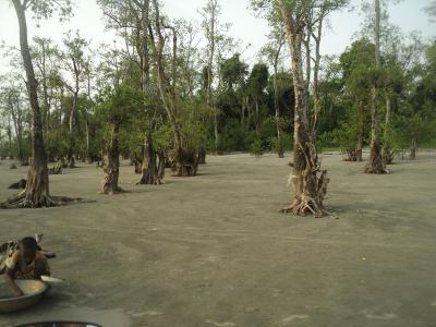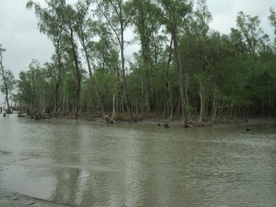 মাঝ খানে ক্যানেল , ওপারে ম্যানগ্রোভ বন