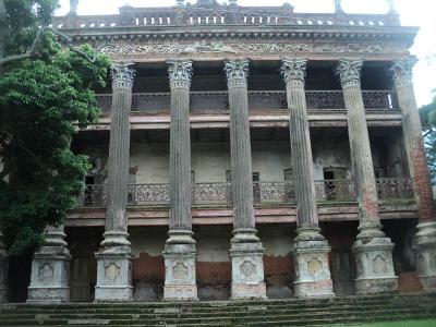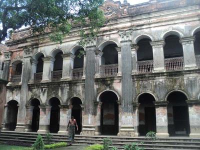 বিআরটিসি এর সেই পুরাতন লাল বাস গুলোতে ছড়ে নামলাম কালামপুর বাস স্ট্যান্ড । বাস চলে গেল সোজা আর আমার গন্তব্য ডানের রাস্তা । নামতেই চোখে পড়লো জনসেবার বাস , কিন্তু লোকাল বিসমিল্লাহ্ বলে সওয়ার হইলাম , বাসের মানুষজন বেশ ভদ্রই তবে এখানে মনে হয় মহিলারা দাঁড়িয়ে থাকলে কেও বসতে দেয় না , লোকাল বাস আর অনেক মহিলা দাঁড়িয়ে একটু ঝামেলাই হচ্ছিল। যাই হোক হেল্পার মামা নামাইয়া দিয়ে বলল ডান দিকে হাটা দেন , হাঁটতে হাঁটতে হঠাৎ ই ই ই খেয়াল হল বিরাট বাড়ি অনেক গুলান , , একসাথে ৪ টি জমিদার বাড়ি এই প্রথম দেখলাম ।