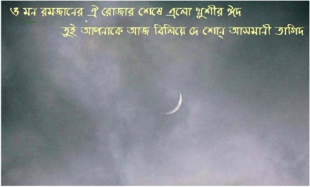 যে গানটি দিয়ে ঈদ-উল-ফিতরের আনন্দ শুরু হয়, সেটি ছাড়া এ সংকলনটি বড়ো বেমানান দেখায়। সামুতে যে ব্লগার নীরবে প্রতিনিয়ত বিভিন্ন গানের কথা শেয়ার করে সামুর ভান্ডারকে করে তুলছে অসাধারণ, ঈদ উপলক্ষ্যে উনার দেয়া সেই বিখ্যাত গানের কথাটি সংযুক্ত করলাম। আরো বিভিন্ন ব্লগার সে গানটি শেয়ার করেছেন। আশা করি, আমি শুধু উনার পোস্টটি দেওয়াতে, বাকি ব্লগাররা আমাকে ভুল বুঝবেন না। আসুন, আমরা ঈদের আনন্দ সবাই মিলে ভাগাভাগি করে নেই।